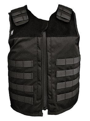 Black Heracles Molle outer cover for a stab-resistant or bulletproof vest from Sioen Ballistics for security guards. Sioen's older bulletproof vests also fit. The Heracles Molle cover for bulletproof vests is anatomically designed to fit both men and women. The Heracles Molle cover is designed to be worn over clothing, is easy to use, and offers numerous storage options thanks to the large Napoleon pockets and the Molle attachment system, which allows for the attachment of numerous accessories. This cover does not, in itself, provide bulletproof or stab-resistant protection.