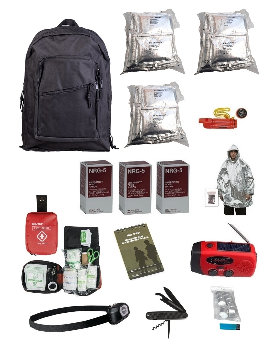 Noodrugzak basis noodpakket 72 uur overleven in noodsituatie online kopen inhoud samengestelde volgens advies overheid kan uitgebreid worden met eigen persoonlijke items.