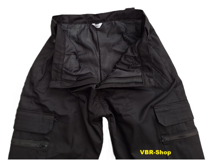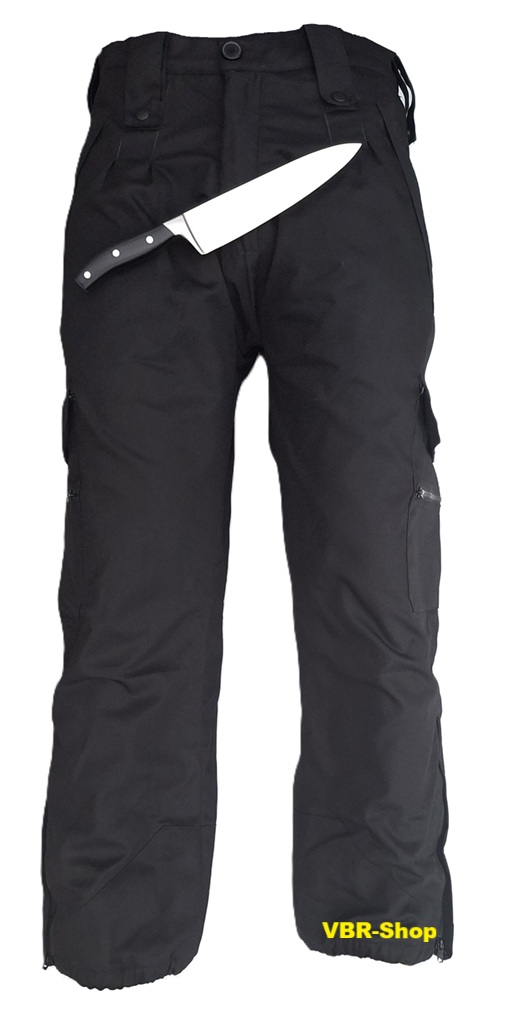 Le matériau extérieur de ce pantalon de combat VBR est en coton hydrofuge. C'est la dernière exigence des services de sécurité, car le policier n'est pas mouillé par la pluie et n'absorbe pas l'humidité (drogues liquides) de la scène du crime. La couche intermédiaire est en Cutyarn résistant aux coupures et est située sur 360° sur toute la surface du pantalon. La nouvelle doublure résistante aux coupures et aux coups de couteau "Spectra by Honeywell with moisture wicking properties" permet à la sueur de s'évaporer plus rapidement sous la couche extérieure en coton hydrofuge et est tricotée très serrée, ce qui rend la résistance aux coups de couteau supérieure à celle d'autres pantalons résistants aux coupures (résistance limitée aux coups de couteau). La couche intérieure est une fine couche protectrice qui offre une sensation agréable au toucher.