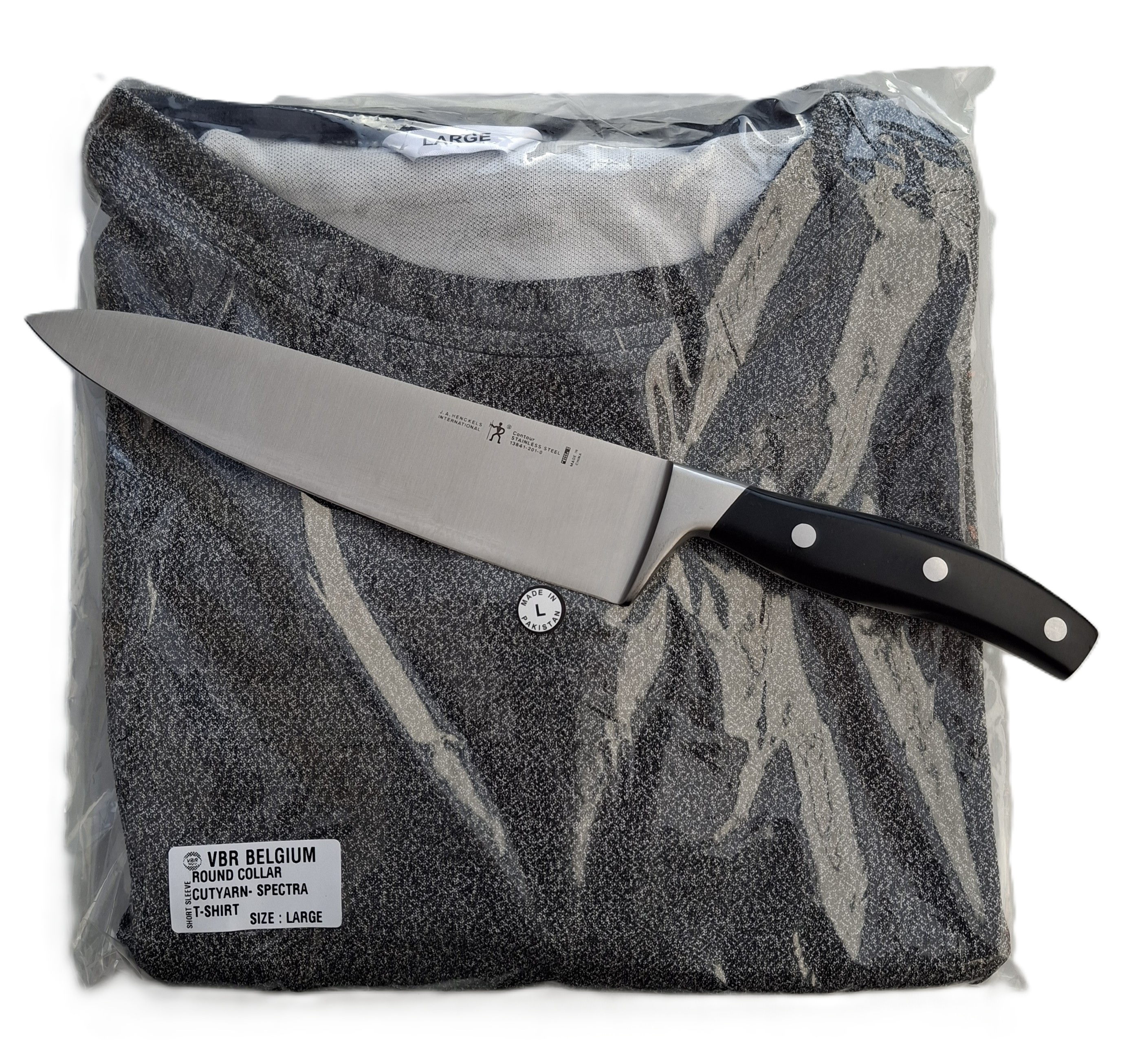 Deze snijwerende, steekwerende en scherfwerende T-shirt of onderhemd is een ernstige en praktische bescherming tegen snijwonden veroorzaakt door een aanvallen met een cuttermes, zakmes of glasscherf. Is steekwerend tegen lichte zakmessen maar niet steekvrij tegen zware dolken. Kan een ernstige verwonding bij een steekpartij verhinderen of de diepte van de wonde aanzienlijk beperken.