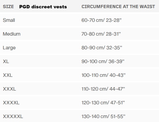 Indien men toch een 360° beschermende vest wenst dan moet men deze kiezen volgens de maattabel en de vest groot genoeg nemen.
